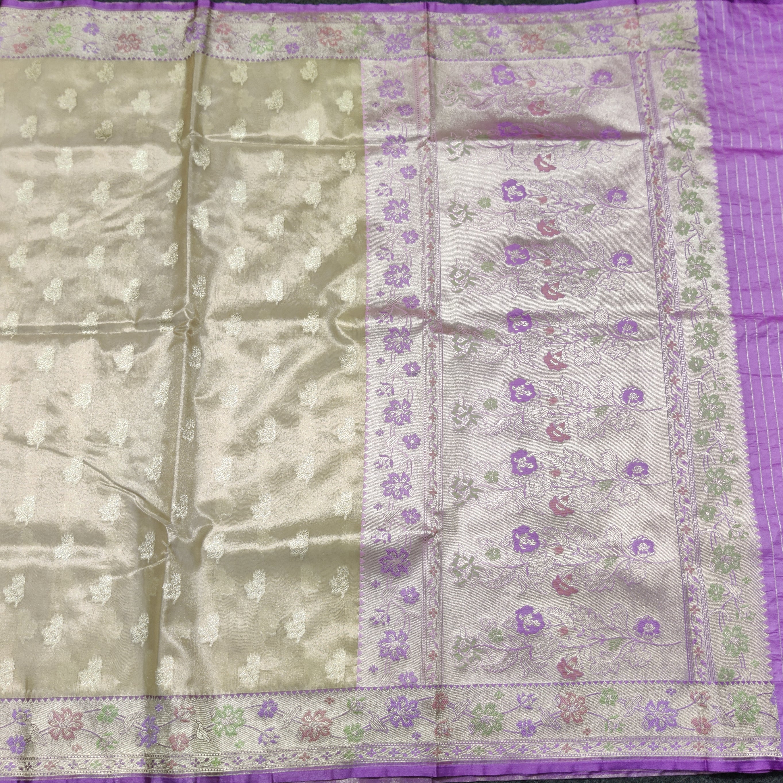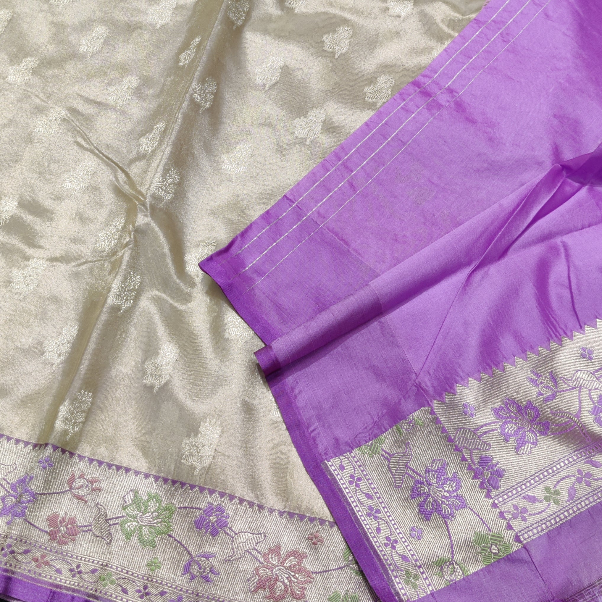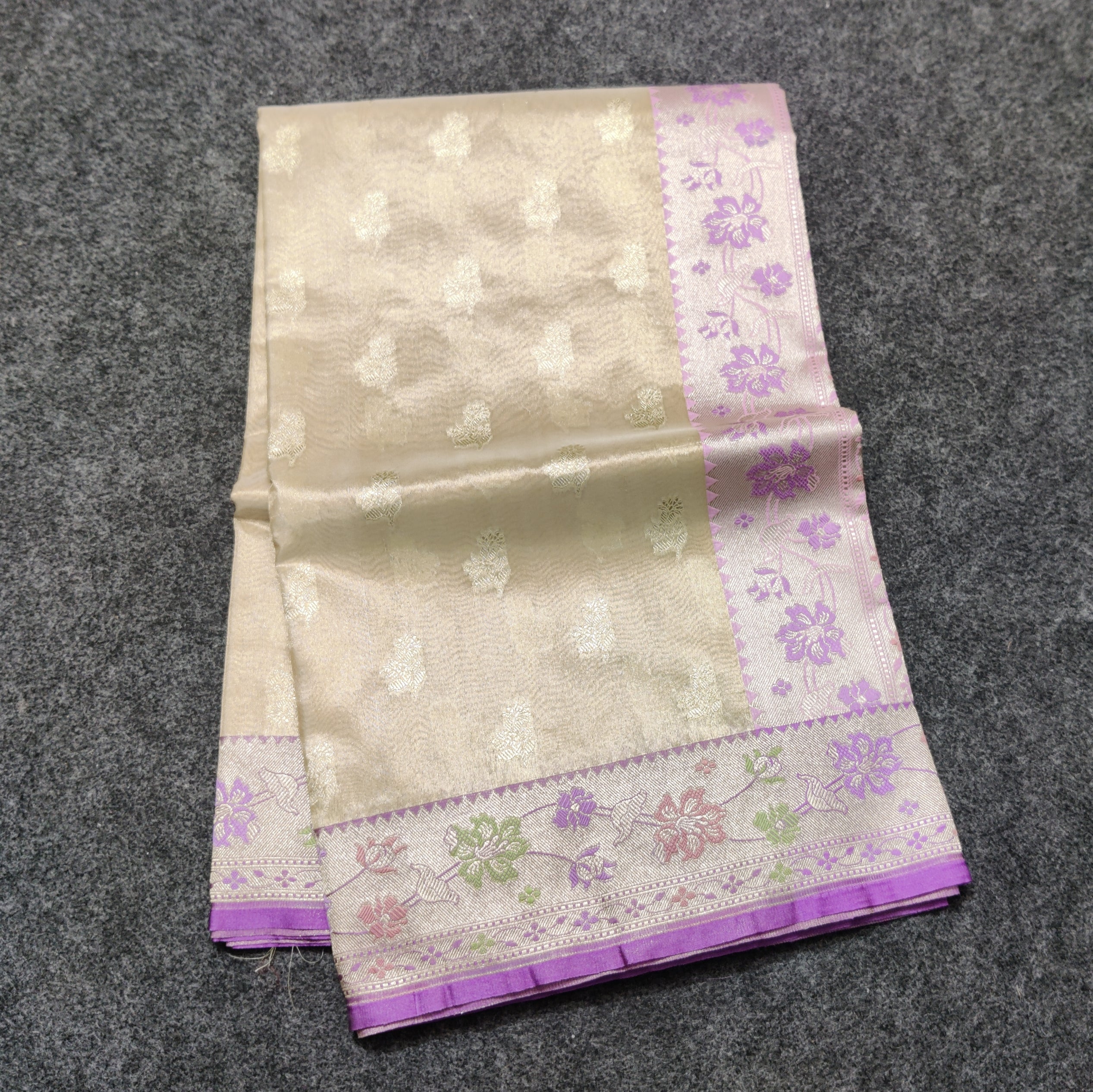 Save -31% Banaras Tissue Silk Saree - BRS09 Share WhatsApp Deel X Product form Rs7,200.00 Rs5,000.00 Cream with lavender 1 Free pickup in our shop(s) 1 in stock Add to cart This item is a deferred, subscription, or recurring purchase. By continuing, I agree to the cancellation policy and authorize you to charge my payment method at the prices, frequency and dates listed on this page until my order is fulfilled or I cancel, if permitted. No Return No RefundExchange Possible if any Damages Guaranteed secure & safe checkout.