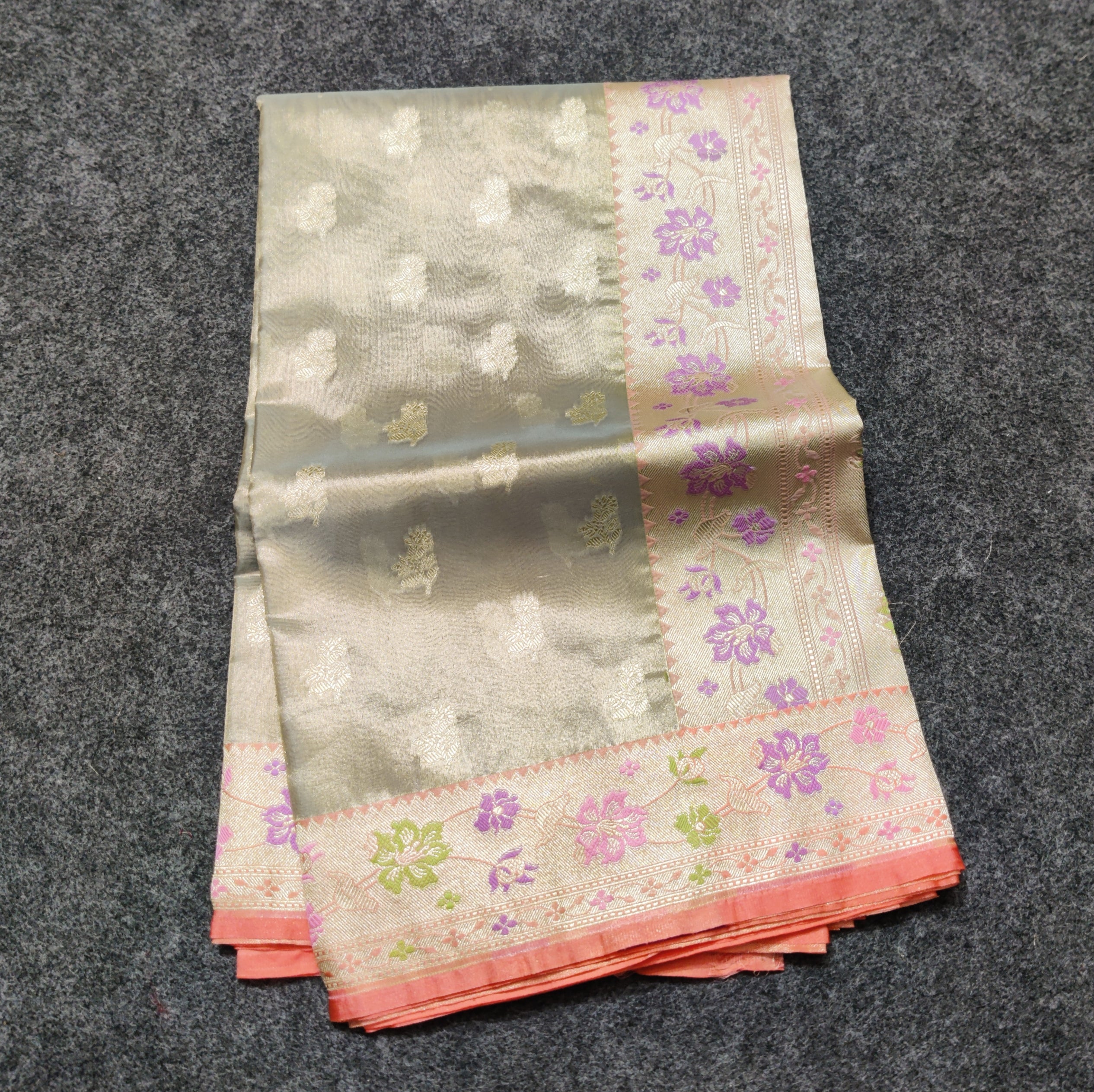 Save -31% Banaras Tissue Silk Saree - BRS05 Share WhatsApp Deel X Product form Rs7,200.00 Rs5,000.00 Grey with peach 1 Free pickup in our shop(s) 1 in stock Add to cart This item is a deferred, subscription, or recurring purchase. By continuing, I agree to the cancellation policy and authorize you to charge my payment method at the prices, frequency and dates listed on this page until my order is fulfilled or I cancel, if permitted. No Return No RefundExchange Possible if any Damages Guaranteed secure & safe checkout.