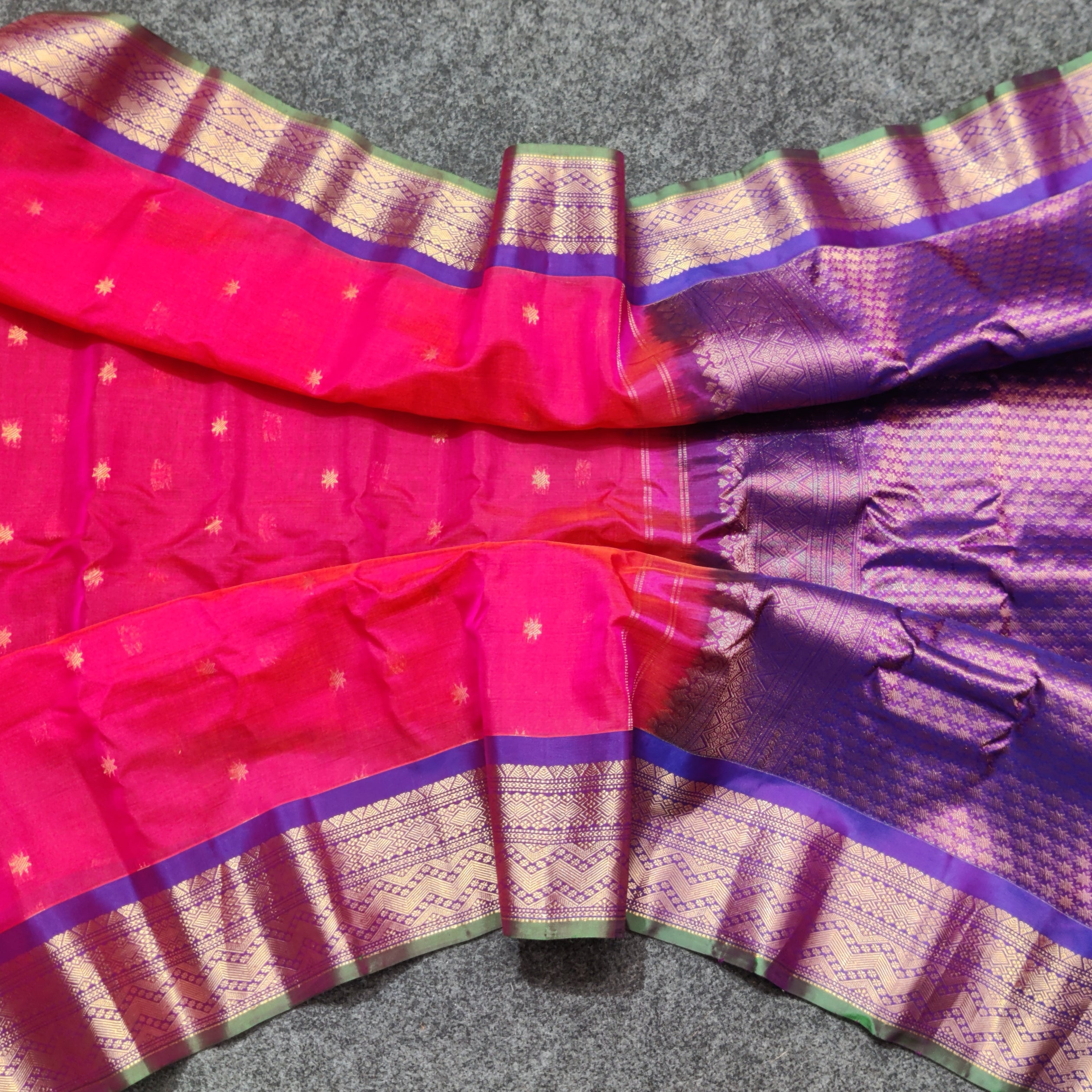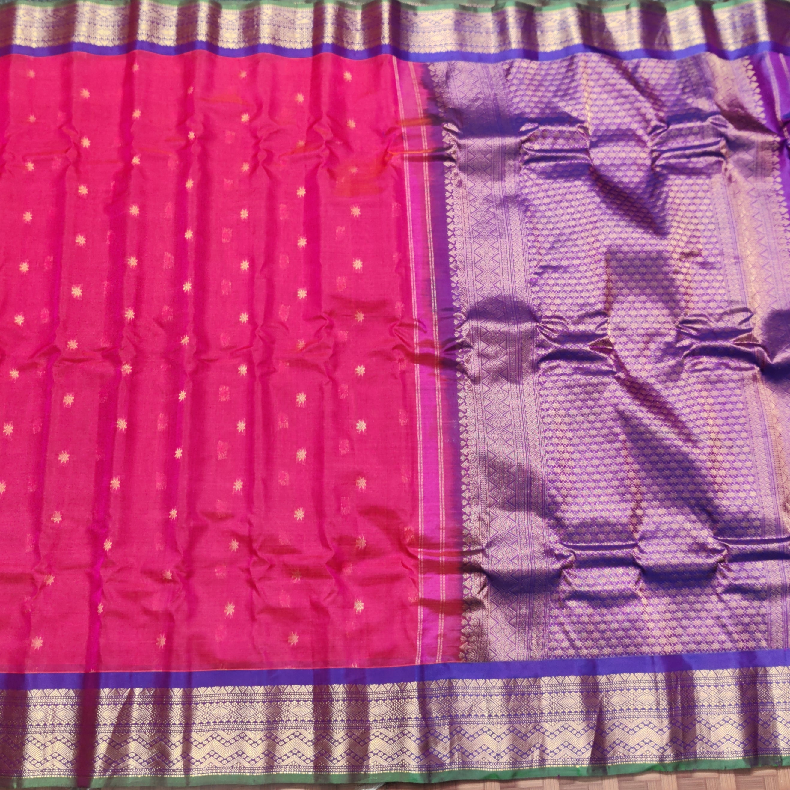 Gadwal Sico Silk Saree - GS154 Share WhatsApp Deel X Product form Rs5,500.00 Pink and purple 1 Free pickup in our shop(s) 1 in stock Add to cart This item is a recurring or deferred purchase. By continuing, I agree to the cancellation policy and authorize you to charge my payment method at the prices, frequency and dates listed on this page until my order is fulfilled or I cancel, if permitted. No Return No RefundExchange Possible if any Damages Guaranteed secure & safe checkout.