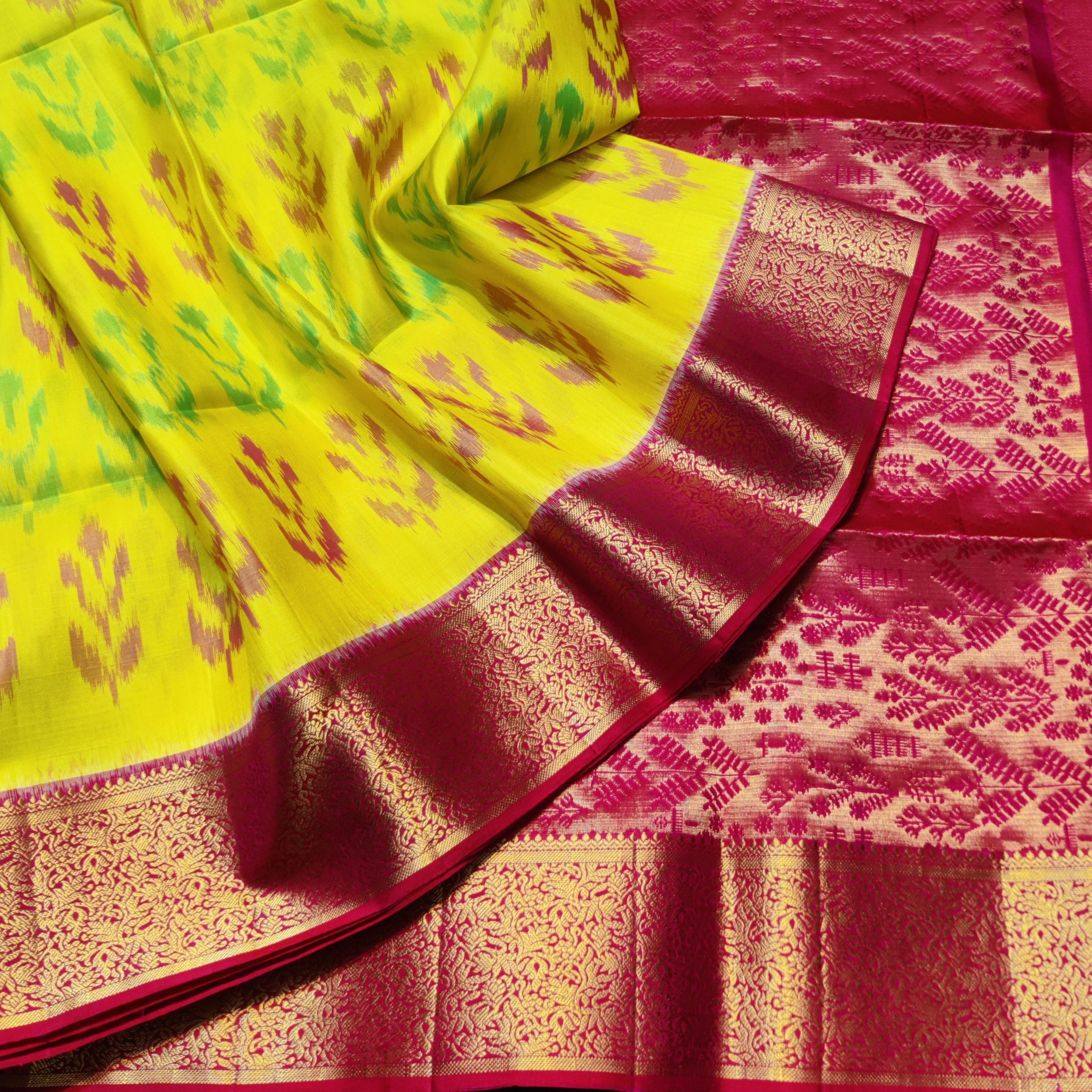 Save -10% Ikkath Pure Silk Pattu Saree- IKT50 Share WhatsApp Deel X Product form Rs11,500.00 Rs10,350.00 Green with pink 1 Free pickup in our shop(s) 1 in stock Add to cart This item is a recurring or deferred purchase. By continuing, I agree to the cancellation policy and authorize you to charge my payment method at the prices, frequency and dates listed on this page until my order is fulfilled or I cancel, if permitted. No Return No RefundExchange Possible if any Damages Guaranteed secure & safe checkout.