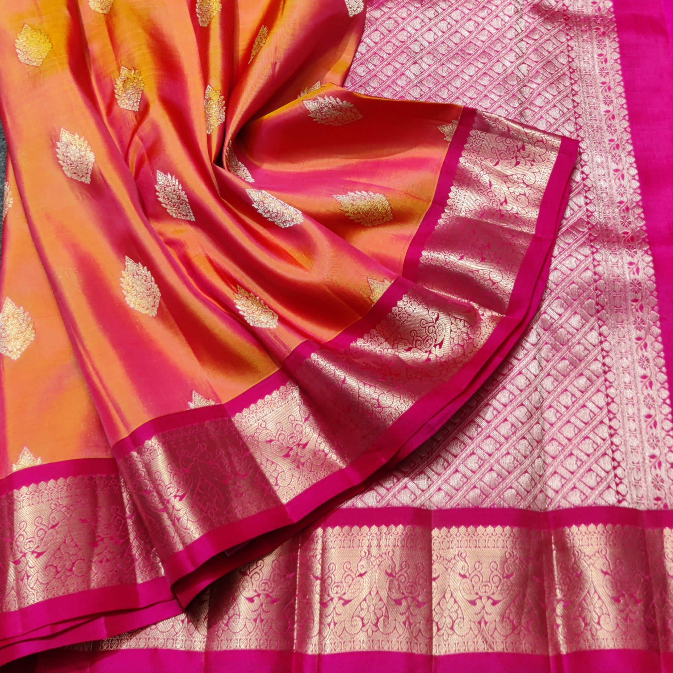 Save -27% Kanchi pattu Small border saree - KMP95 Share WhatsApp Deel X Product form Rs7,500.00 Rs5,500.00 Orange with pink 1 Free pickup in our shop(s) 1 in stock Add to cart This item is a deferred, subscription, or recurring purchase. By continuing, I agree to the cancellation policy and authorize you to charge my payment method at the prices, frequency and dates listed on this page until my order is fulfilled or I cancel, if permitted. No Return No RefundExchange Possible if any Damages Guaranteed secure & safe checkout.