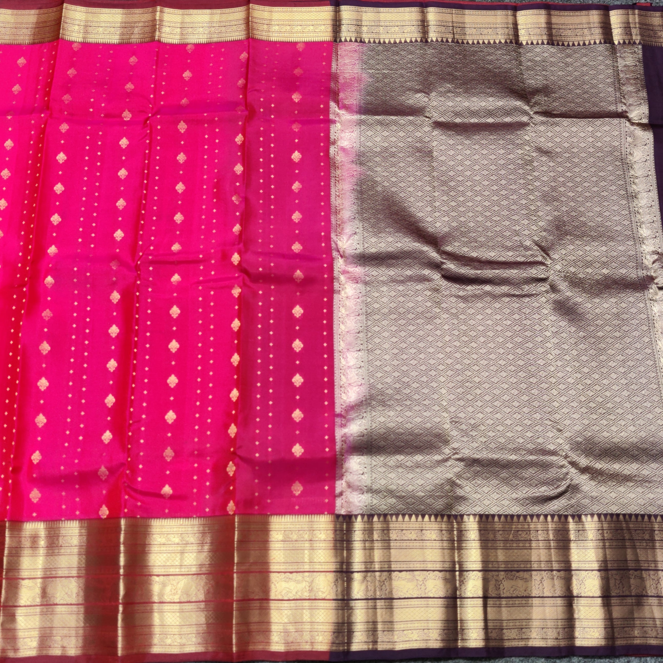 Save -32% Kanchi Pure Silk Saree- KMP3410 Share WhatsApp Deel X Product form Rs6,250.00 Rs4,250.00 Reddish pink with wine 1 Free pickup in our shop(s) 1 in stock Add to cart This item is a recurring or deferred purchase. By continuing, I agree to the cancellation policy and authorize you to charge my payment method at the prices, frequency and dates listed on this page until my order is fulfilled or I cancel, if permitted. No Return No RefundExchange Possible if any Damages Guaranteed secure & safe checkout.