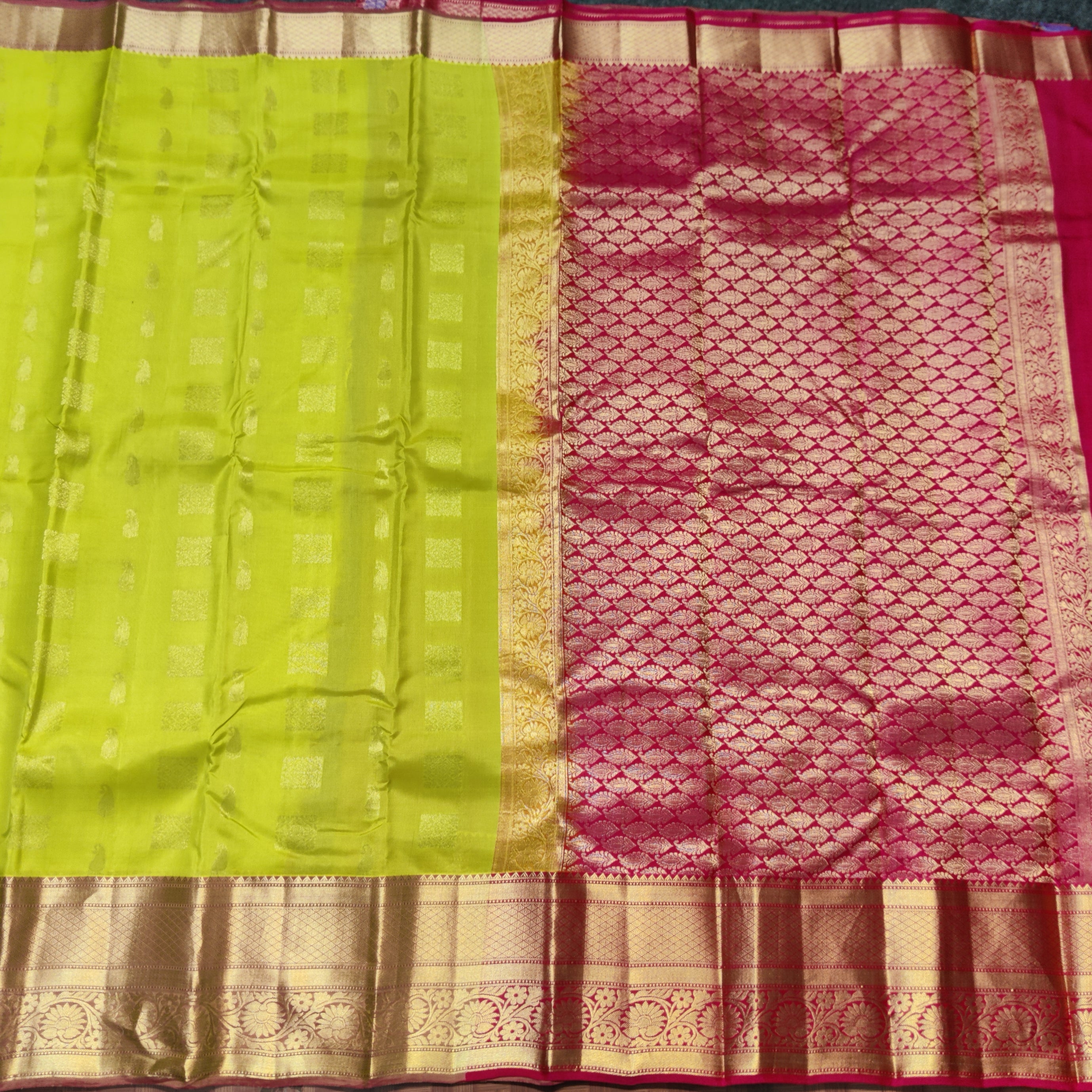 Save -33% Pure Kanchi Pattu Saree - KMP1935 Share WhatsApp Deel X Product form Rs6,000.00 Rs4,000.00 Green with pink 1 Free pickup in our shop(s) 1 in stock Add to cart This item is a recurring or deferred purchase. By continuing, I agree to the cancellation policy and authorize you to charge my payment method at the prices, frequency and dates listed on this page until my order is fulfilled or I cancel, if permitted. No Return No RefundExchange Possible if any Damages Guaranteed secure & safe checkout.